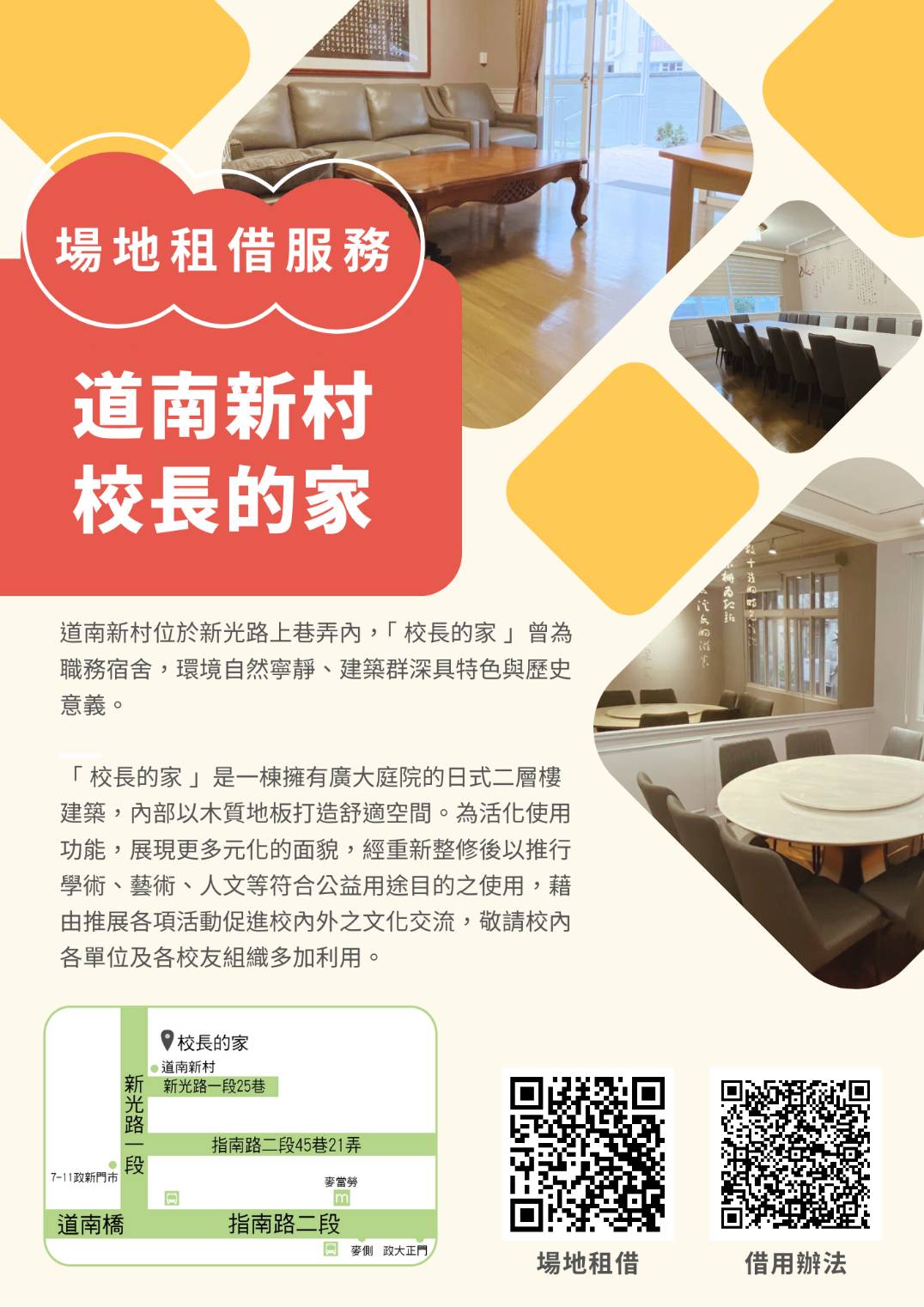 為道南新村巷道施工作業及安全考量,自本(114)年度 6 月 13 日(五)起暫停借用,待完工再開放,造成不便,敬請見諒。